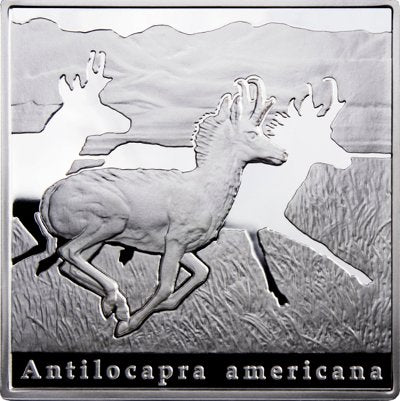 centralnej części monety: 3 sceny przedstawiające widłoroga w biegu. W