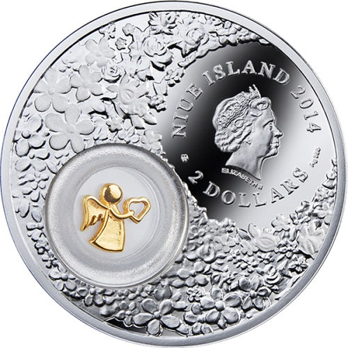 (nominał – 2 dolary) i próba srebra: Ag 999. Z lewej strony monety –