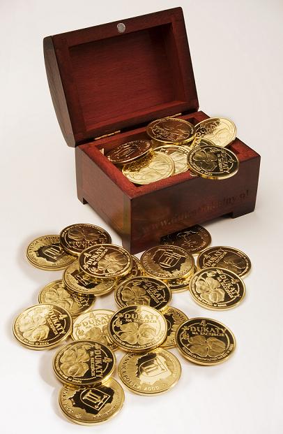 na szczęście. Takie dukaty to talizman nowego typu. Bity jest