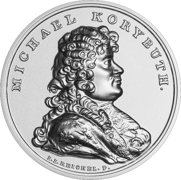 półkolem napis: MICHAEL KORYBUTH, zakończony kropką. U dołu