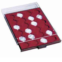 przeznaczona jest do przechowywania i estetycznego wyeksponowania 30 monet kolekcjonerskich o nominale 10 zł w kapslach,ułatwia transport i umożliwia bardzo wygodne przenoszenie Twojej kolekcji,posiada 30 miejsc na monety o średnicy 32,5 mm,wymiary kasety: 236 x 303 x 20 mm,kolor wkładu: ciemnoczerwony,dzięki specjalnym "nóżkom" do łączenia kaset, kasety można układać pionowo,ponadto do kaset można dokupić specjalne kufry firmy Leuchtturm, które zamykane są na kluczyk i przeznaczone do przechowywania 5 lub 10 kaset.